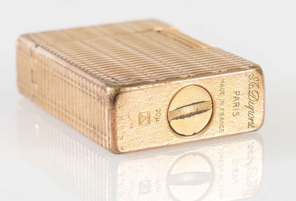 DUPONT Accendino in metallo dorato. Cm 4,6x3,5x1,3.