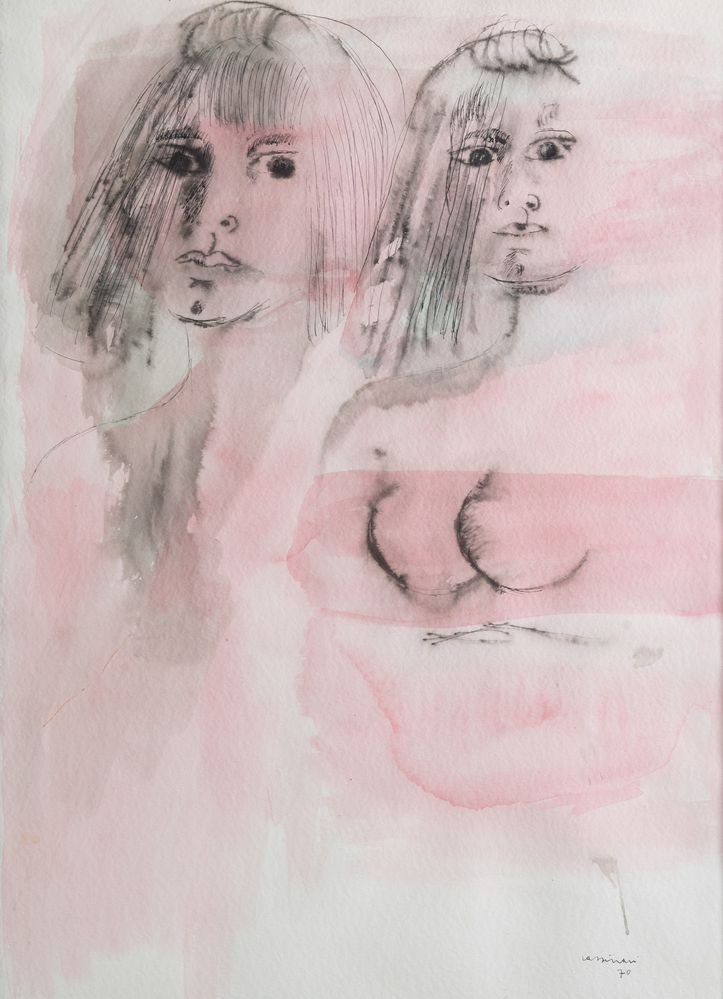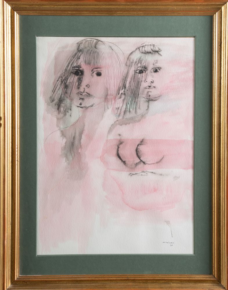 BRUNO CASSINARI (Piacenza 1912 - Milano 1992) "Figure", 1970. Acquerello e china su carta applicata su cartone. Cm 70x50. Opera firmata e datata in basso a destra Cassinari '70. Opera accompagnata da autentica su fotografia a firma dell'artista. Opera accompagnata da autentica su fotografia della Galleria La Bottega, Ravenna.