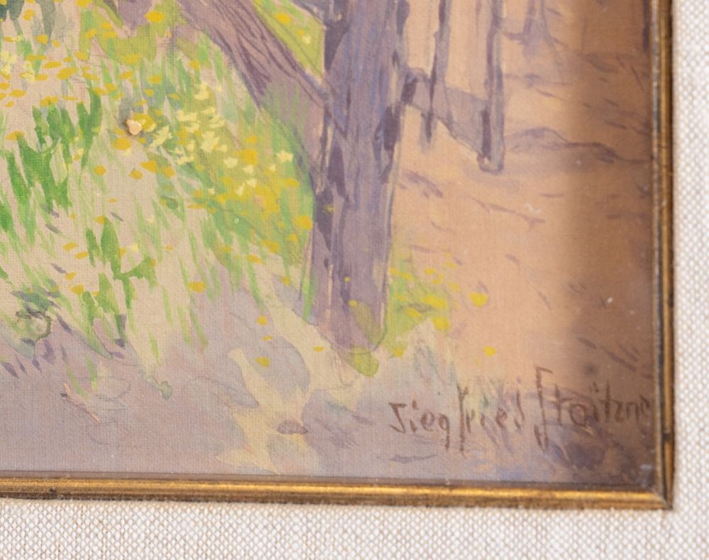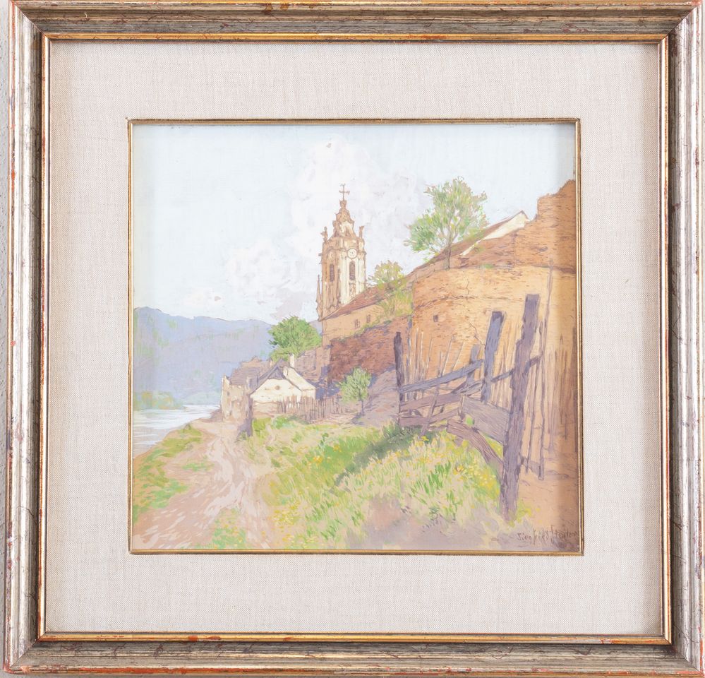 Pittore anonimo del XX secolo. "Predappio". Olio su carta. Cm 28x29. Opera firmata in basso a destra.