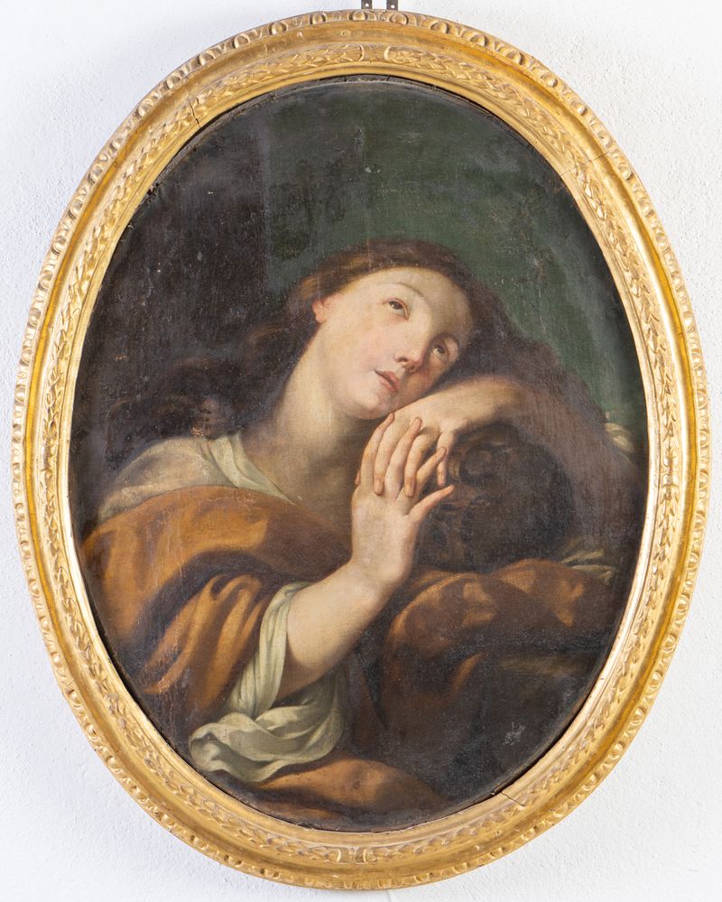 Maestro emiliano del XVII secolo. "Maddalena". Olio su tela. Cm 84x67....