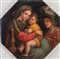 Maestro emiliano del XVII secolo. "Madonna della seggiola con San Michele". Olio su tela ottagonale. Cm 90,5x92.