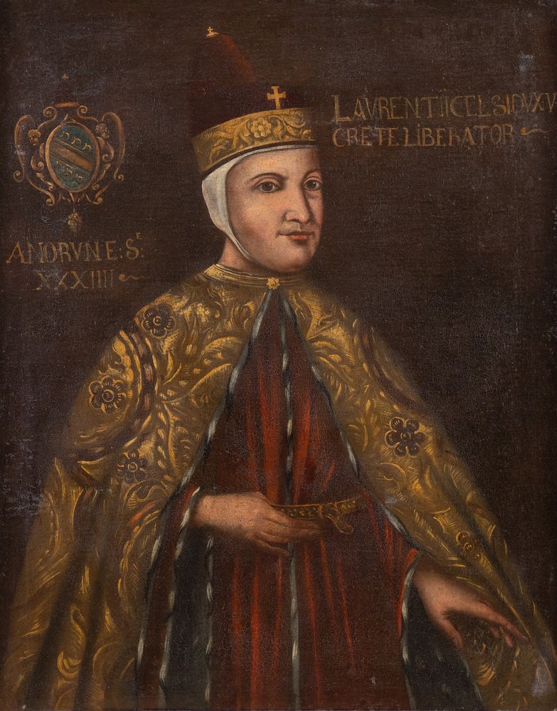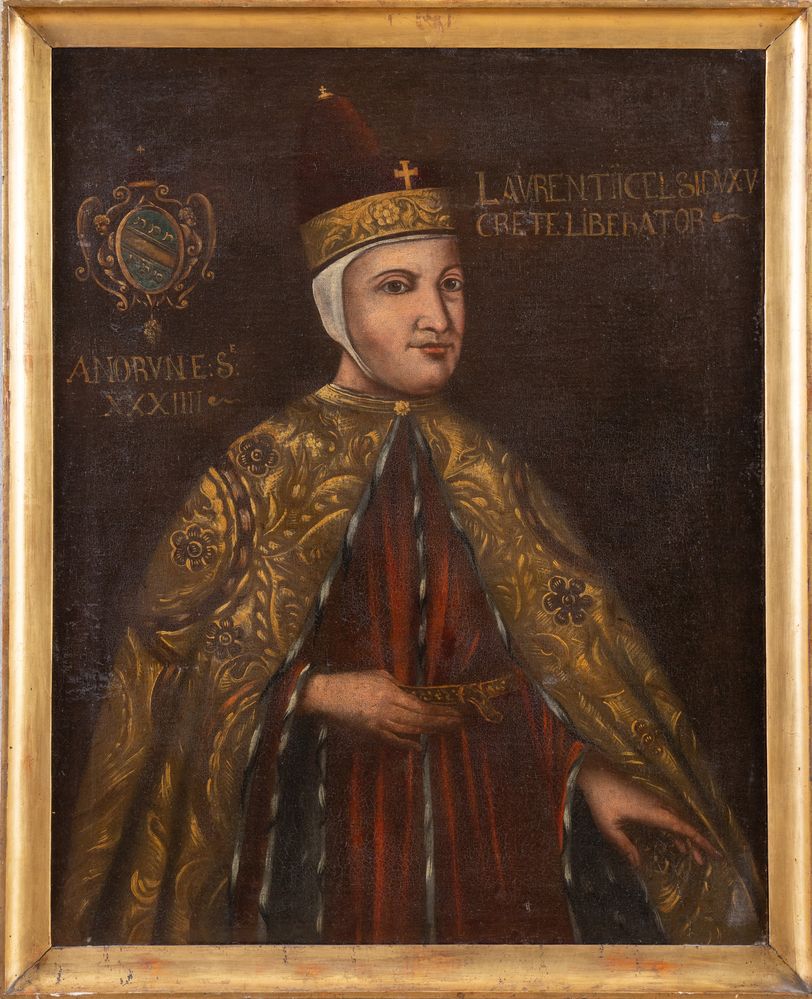 Maestro del XVII secolo. "Ritratto del Doge Lorenzo Celsi". Olio su tela. Cm 87x69.