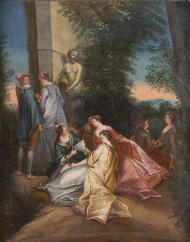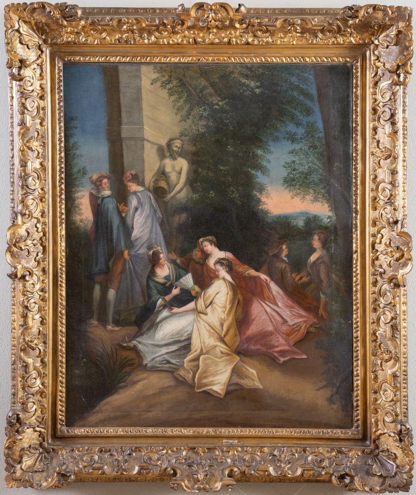Maestro francese del XIX secolo. "Scena galante". Olio su tela. Cm 85x67.