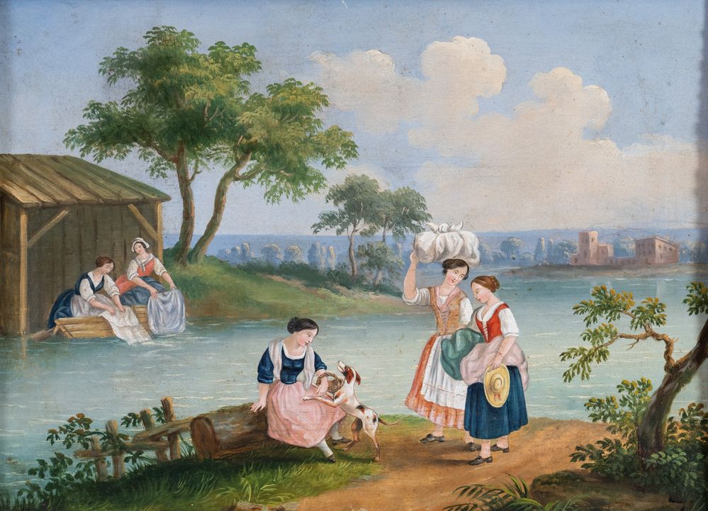 Maestro della prima metà del XIX secolo. ”Paesaggi con figure”. Lotto...