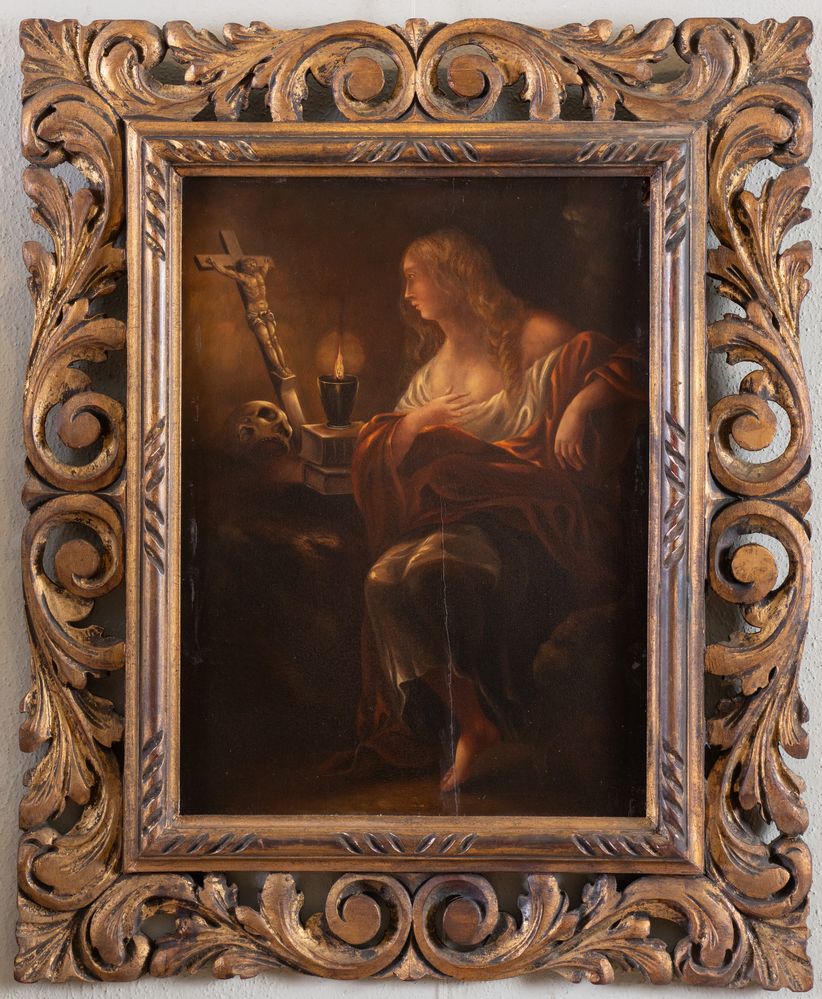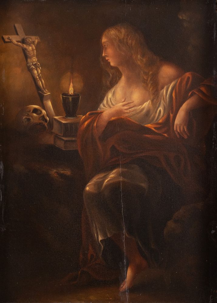 Maestro fiammingo della metà del XVIII secolo. "Maddalena". Olio su tavola....