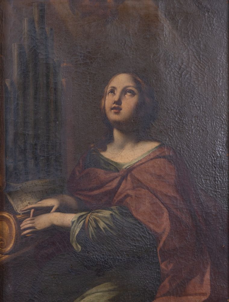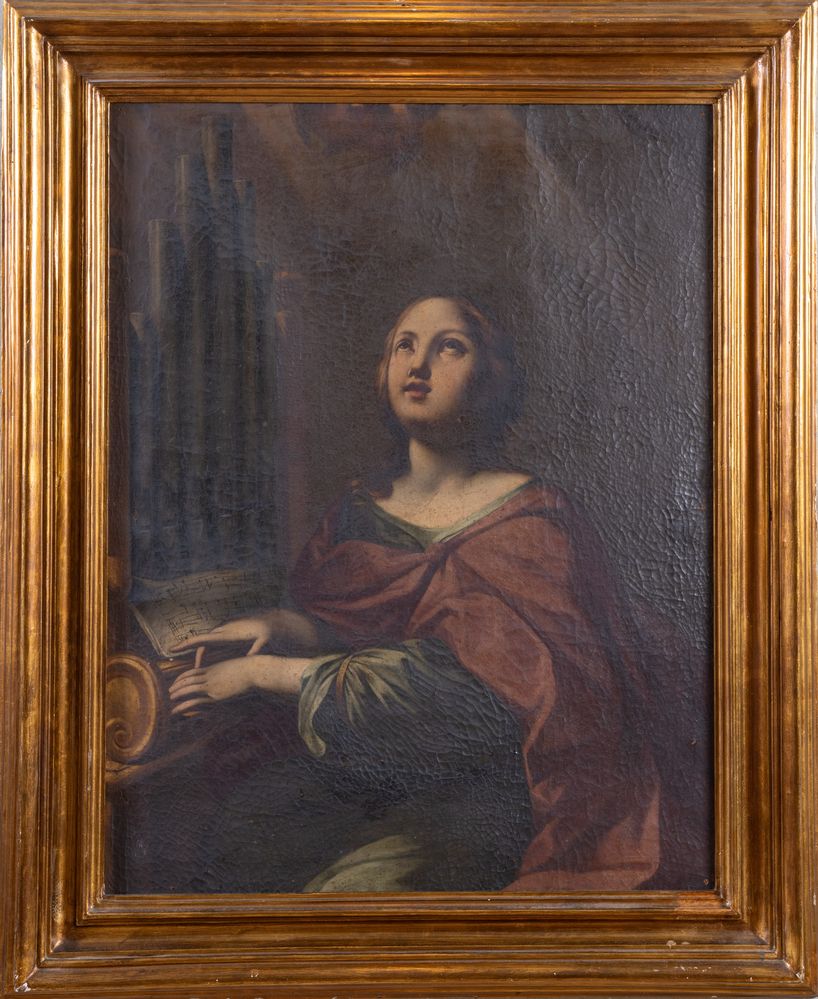 Maestro bolognese del XVII secolo. "Santa Cecilia". Olio su tela. Cm 85x66.
