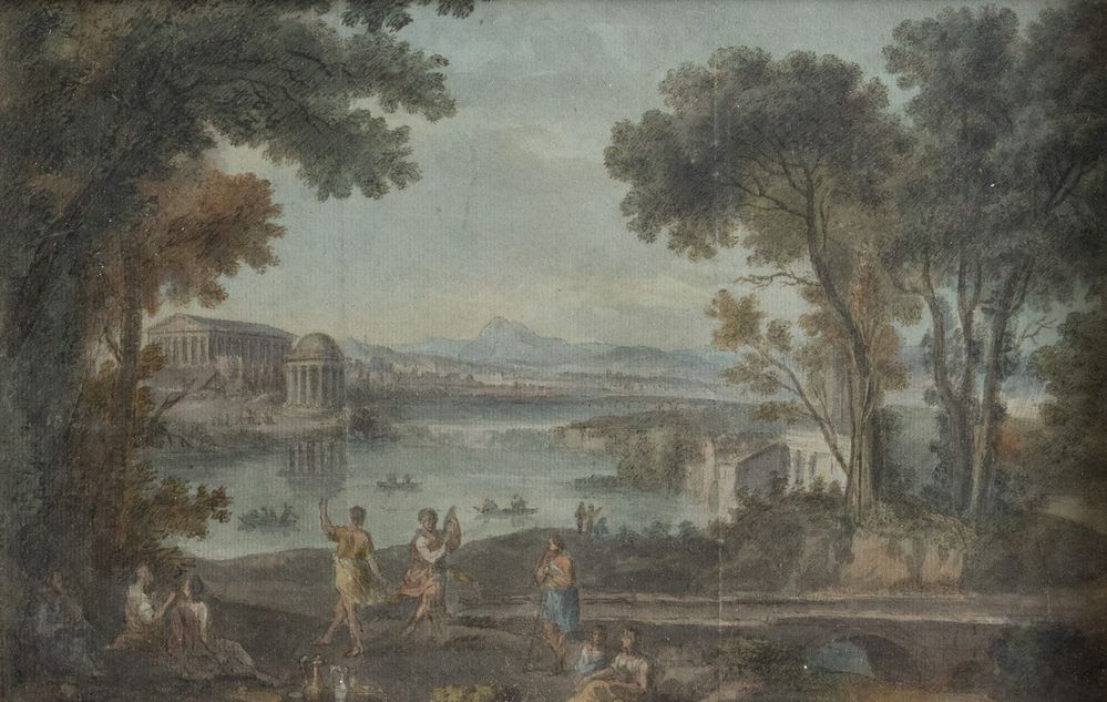 Claude LE LORRAIN (1600-1682), attr. "La danza". Tecnica mista su carta. Cm 20,5x31.