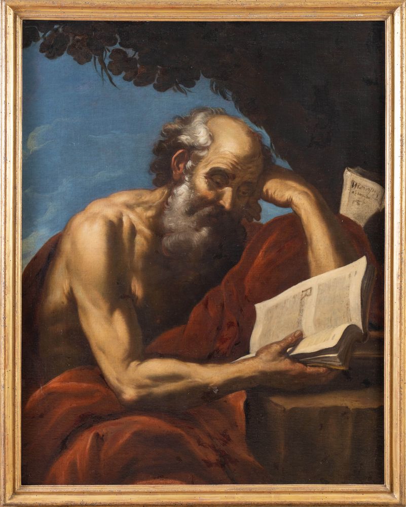 GIROLAMO TROPPA (Torri in Sabina 1637 – Roma 1733) "San Girolamo". Olio su tela. Cm 111x86.