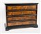 Canterano in massello di noce con cornici ebanizzate e fronte dei cassetti lastronato in radica di noce. Piano a becco di civetta, cornicione modanato, sorretto da piedi a mensola. Emilia, ultimo quarto del XVII secolo. Cm 109x140x61.