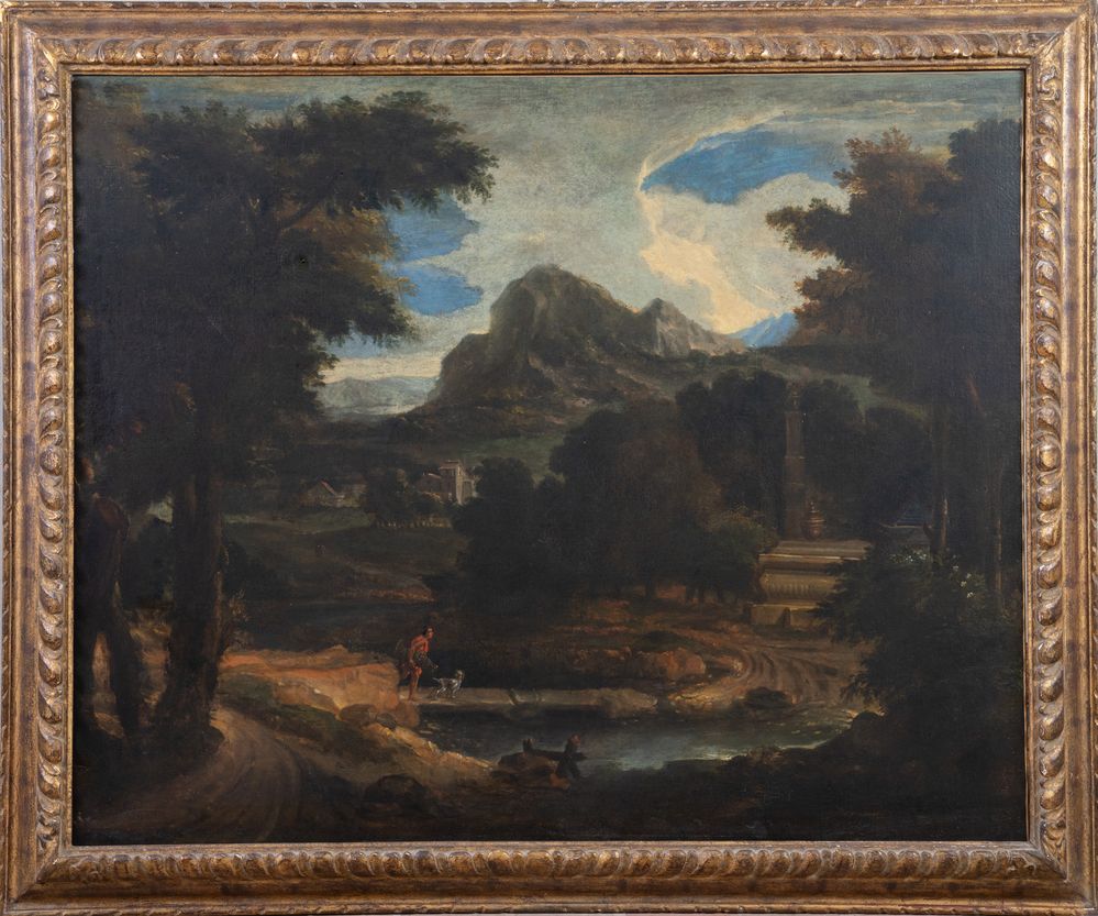 Maestro del XVIII secolo. “Paesaggio con figure”. Olio su tela. Cm 101x126,5.