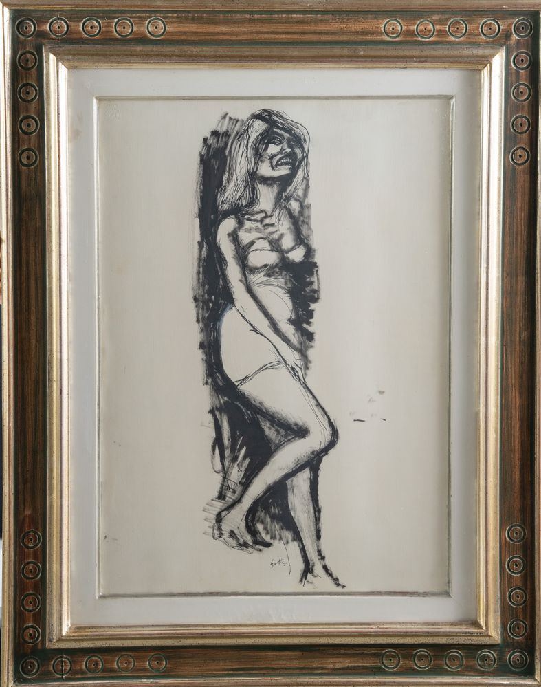 RENATO GUTTUSO (Bagheria 1911 – Roma 1987) "Figura". Tecnica mista su carta applicata su carta. Cm 64x45. Opera firmata in basso al centro Guttuso. Opera accompagnata da autentica su fotografia a firma dell'artista.
