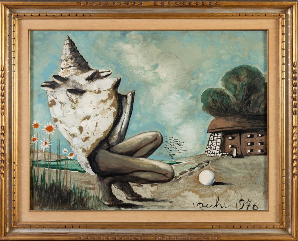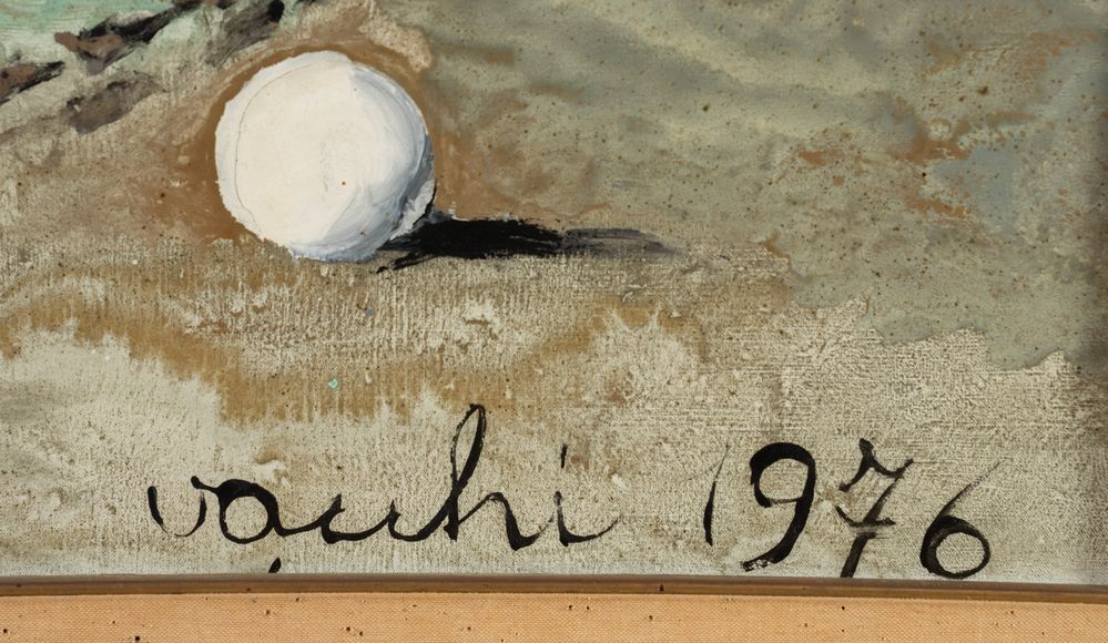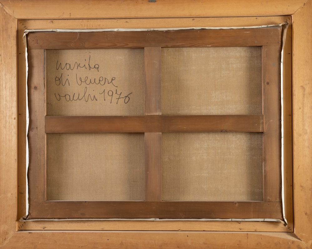 SERGIO VACCHI (Castenaso 1925 – Siena 2016) "Nascita di Venere", 1976. Olio su tela. Cm 75x100. Opera firmata e datata in basso a destra Vacchi, 1976. Al retro opera intitolata, firmata e datata Nascita di Venere, Vacchi, 1976.