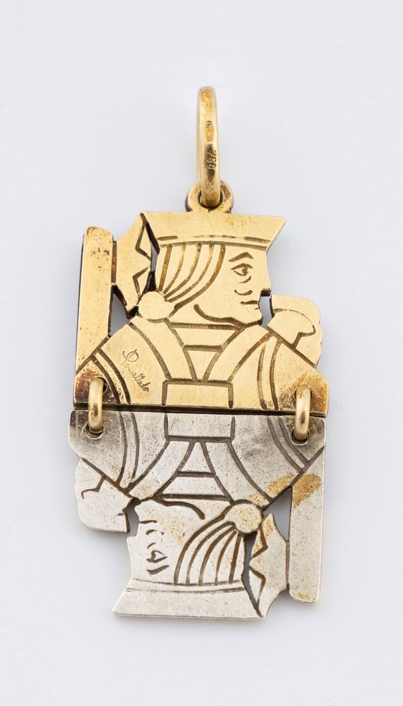 POMELLATO Ciondolo in oro giallo e bianco 18K a forma di carte da gioco. Reca marchio Pomellato. Peso complessivo 21,80 grammi.