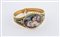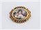 Bracciale a manetta e spilla cajolet oro giallo 18K, Epoca Borbonica, ciascuno centrato da miniatura dipinta di soggetto femminile decorata con piccole rose di diamante, microperle e smalti neri. Peso complessivo 39,5 grammi.