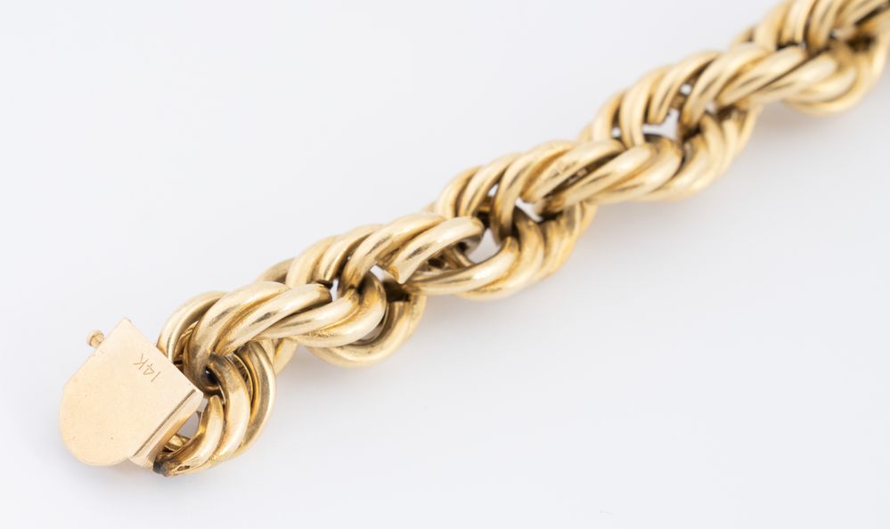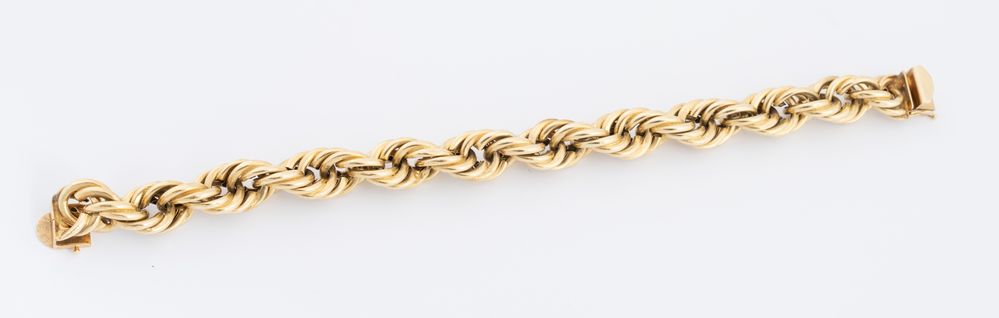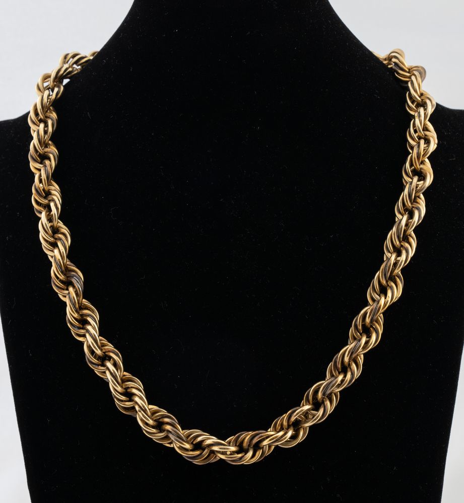 Demi parure in oro giallo 14K composta da collana e bracciale a catena a corda. Peso complessivo 102,90 grammi.