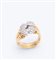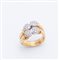 Anello in oro giallo, rosa e bianco 18K e diamanti, realizzato con gambo a forcella di linea sinuosa e centrato da quattro elementi circolari decorati a pavé di diamanti per un peso stimato di 0,40 ct. Peso complessivo 7,8 grammi.