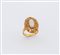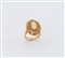 Anello in oro giallo 18K inciso e traforato, centrato da cabochon ovale...