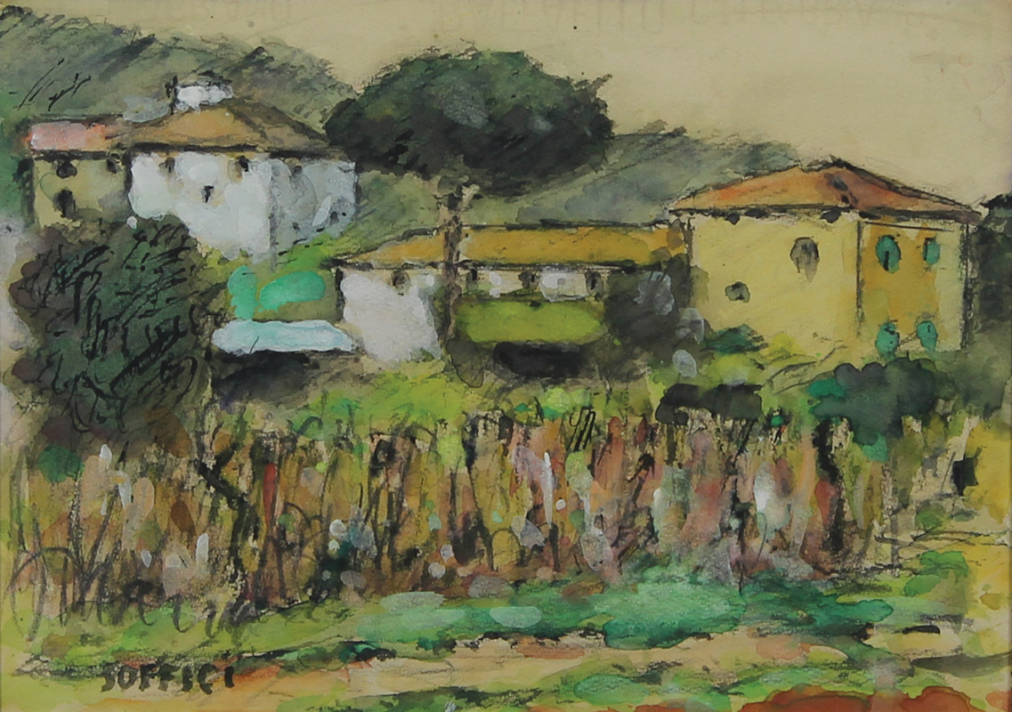Soffici Ardengo Case a Poggio, anni '60 acquarello su carta filigranata...