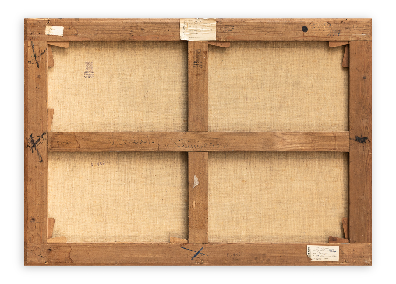 Etichetta della Galleria Mutina (MO) con caratteristiche tecniche dell'opera al retro