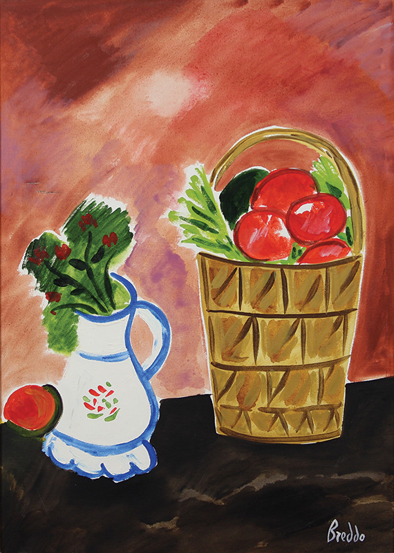 Breddo Gastone Natura morta olio su tela, cm. 70x50 firmato in basso a destra, certificato di autenticità della Telemarket, certificato di garanzia e autenticità della Casa d'Aste Meeting Art del 16/02/2004