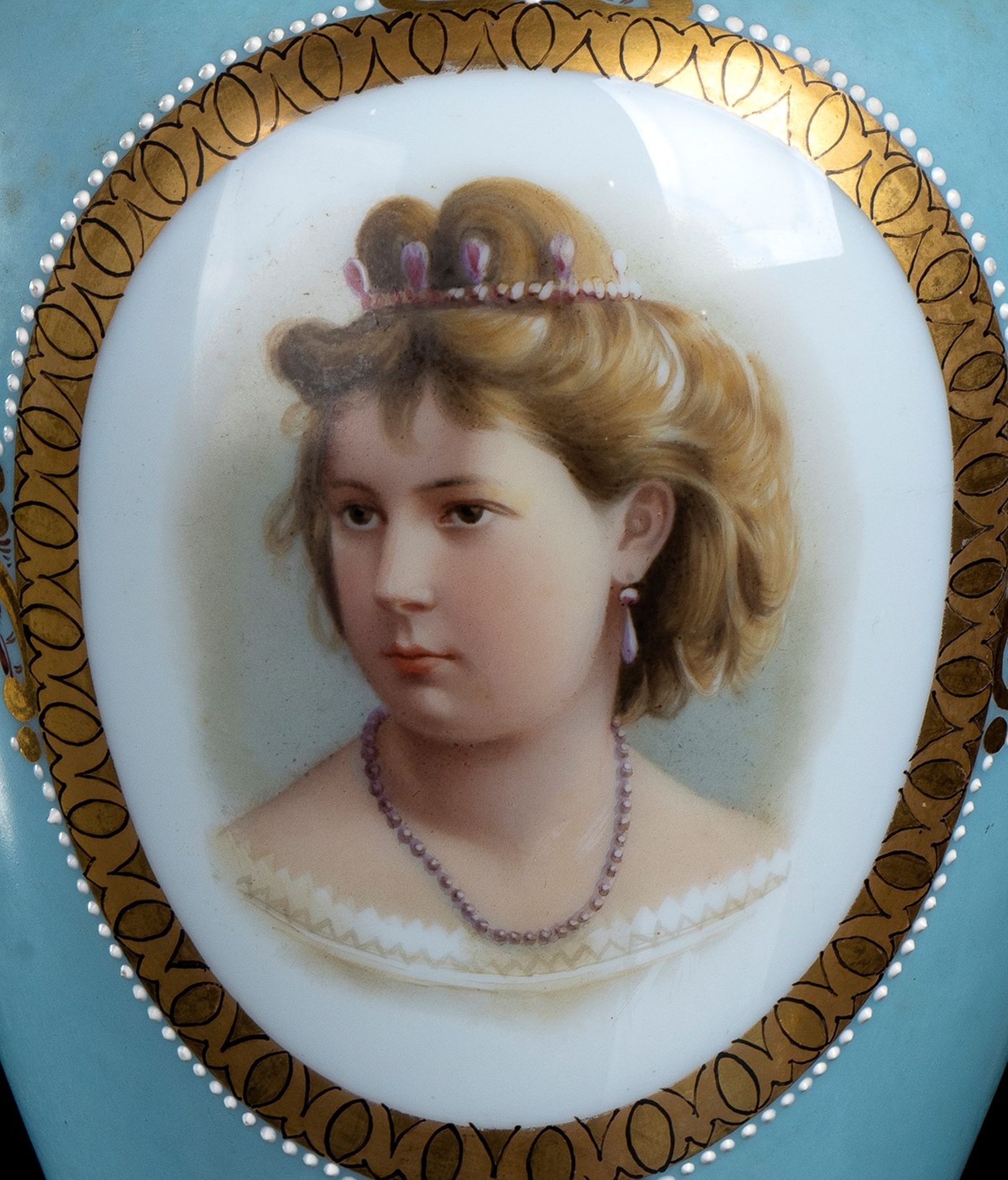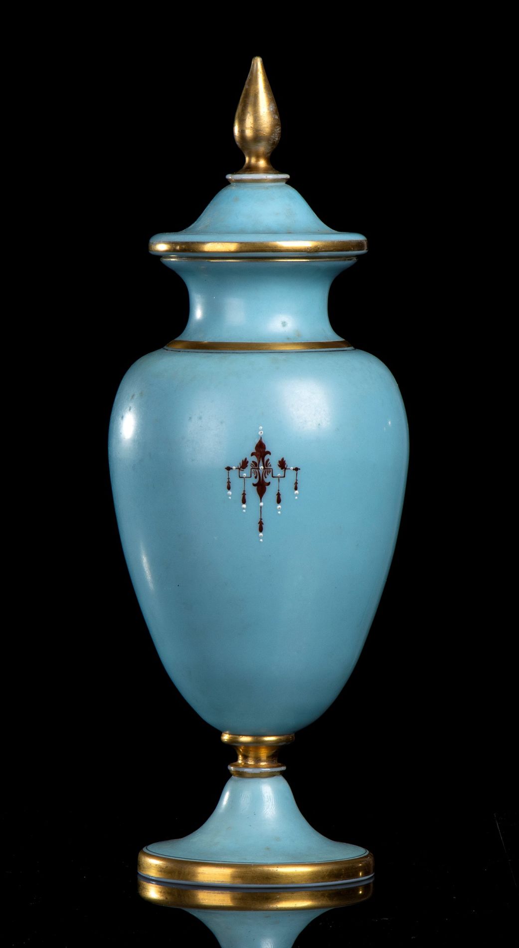 Vaso Giorgio IV in opalina - Inghilterra, Bristol, 1780 circa attribuibile a Henry Bone (6 febbraio 1755 - 17 dicembre 1834)., siglato in rosso " 9 x".