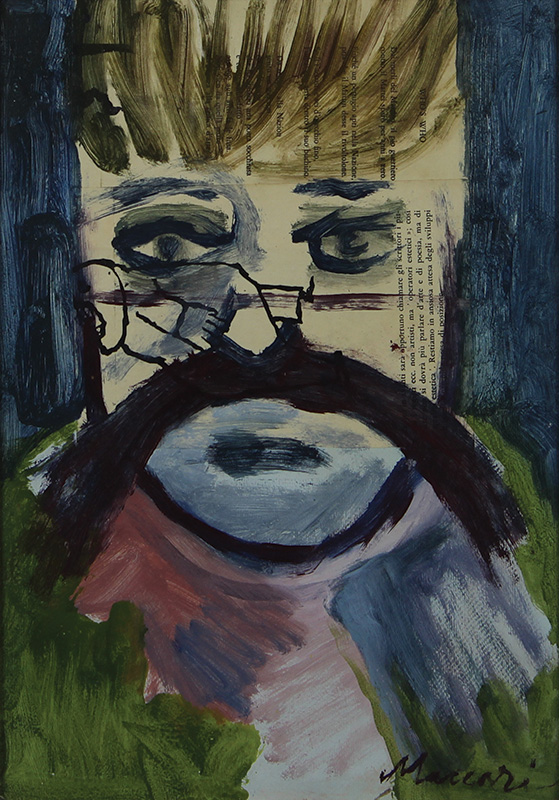 Maccari Mino Senza titolo, anni '80 olio su carta intelata, cm. 44x31 firmato in basso a destra, certificato di autenticità dell'Archivio delle Opere del Maestro Mino Maccari su fotografia