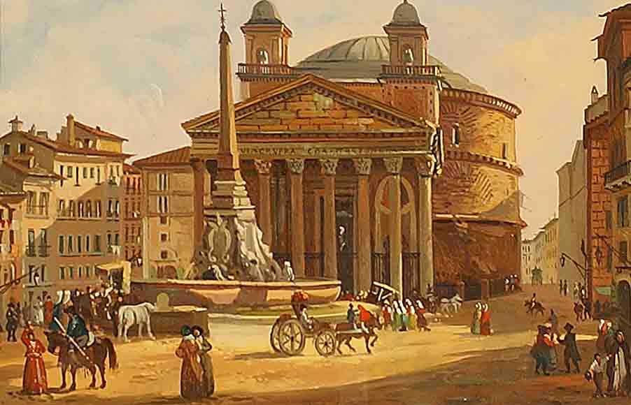 Maestro italiano della fine del XIX secolo, "Veduta del Pantheon con...