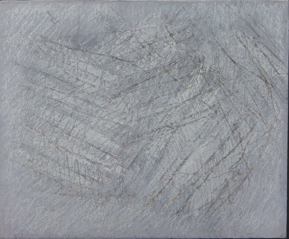Strazza Guido Muro rosa e azzurro, 1981 tempera e graffito su cartone, cm. 54x75 firmata datata e intitolata al retro, etichetta della Galleria Giulia di Roma ed etichetta della Mostra Internazionale di Grafica Contemporanea di Vignola al retro
