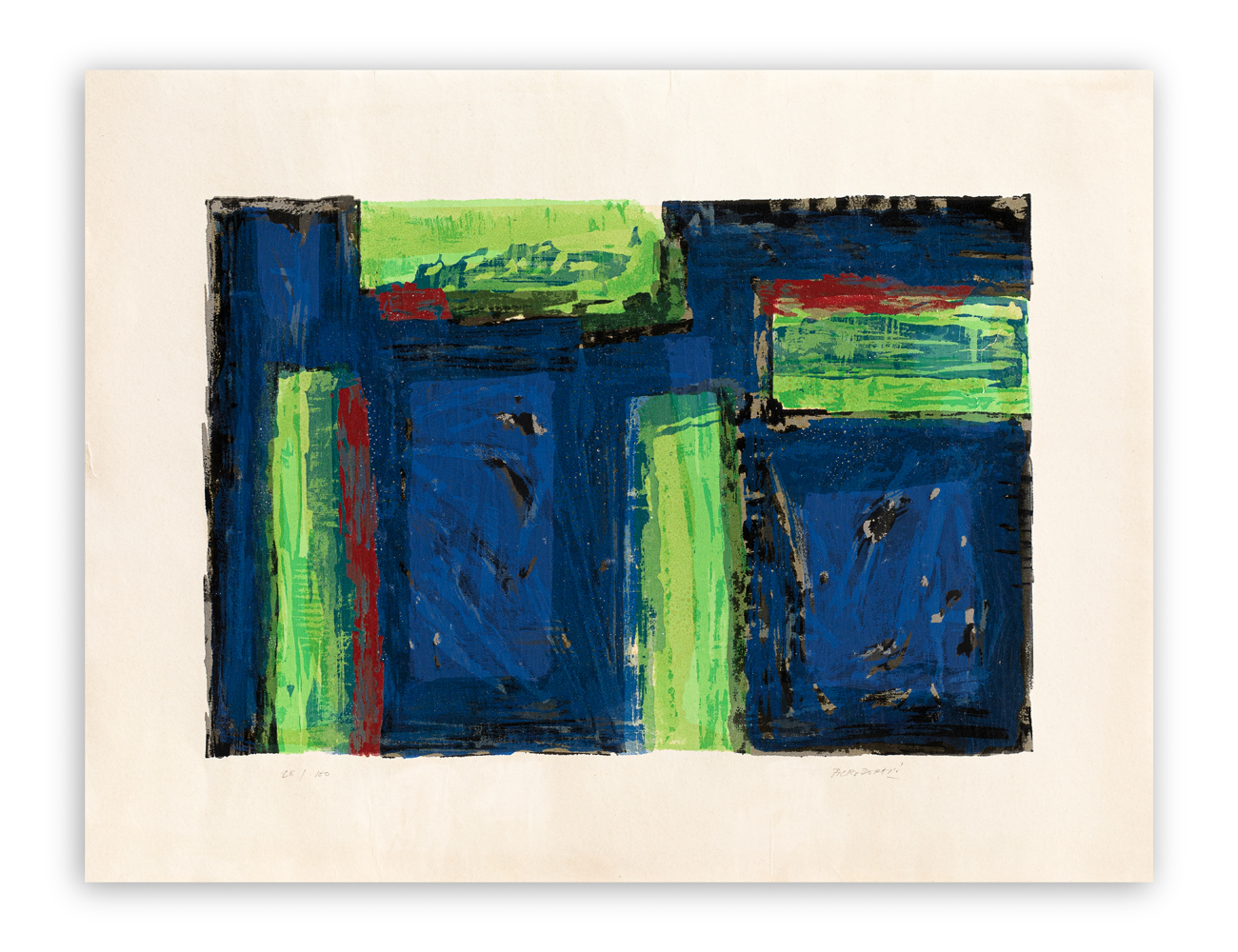 Opera originariamente facente parte della cartella 'Arte astratta. Italia 1955' edita dalle Edizioni dell'Art Club di Roma nel 1955, e composta da 14 serigrafie di Afro, Balla, Conte, Dorazio, Jarema, Magnelli, Moretti, Munari, Nativi, Perilli, Prampolini, Radice, Severini e Soldati