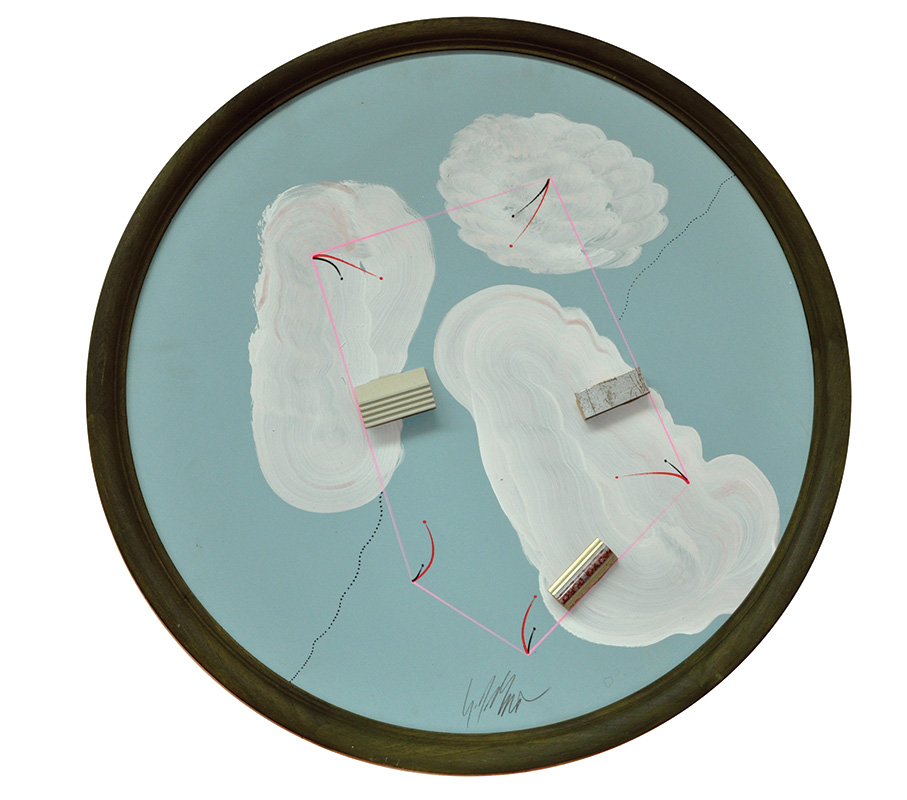 Dangelo Sergio Tendre olio e collage su faesite, diam. cm. 70 firmato in basso