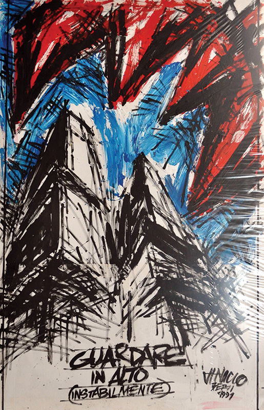Berti Vinicio Guardare in alto (instabilmente), 1991 olio su tela, cm. 300x200 firmato e datato in basso a destra, intitolato in basso al centro