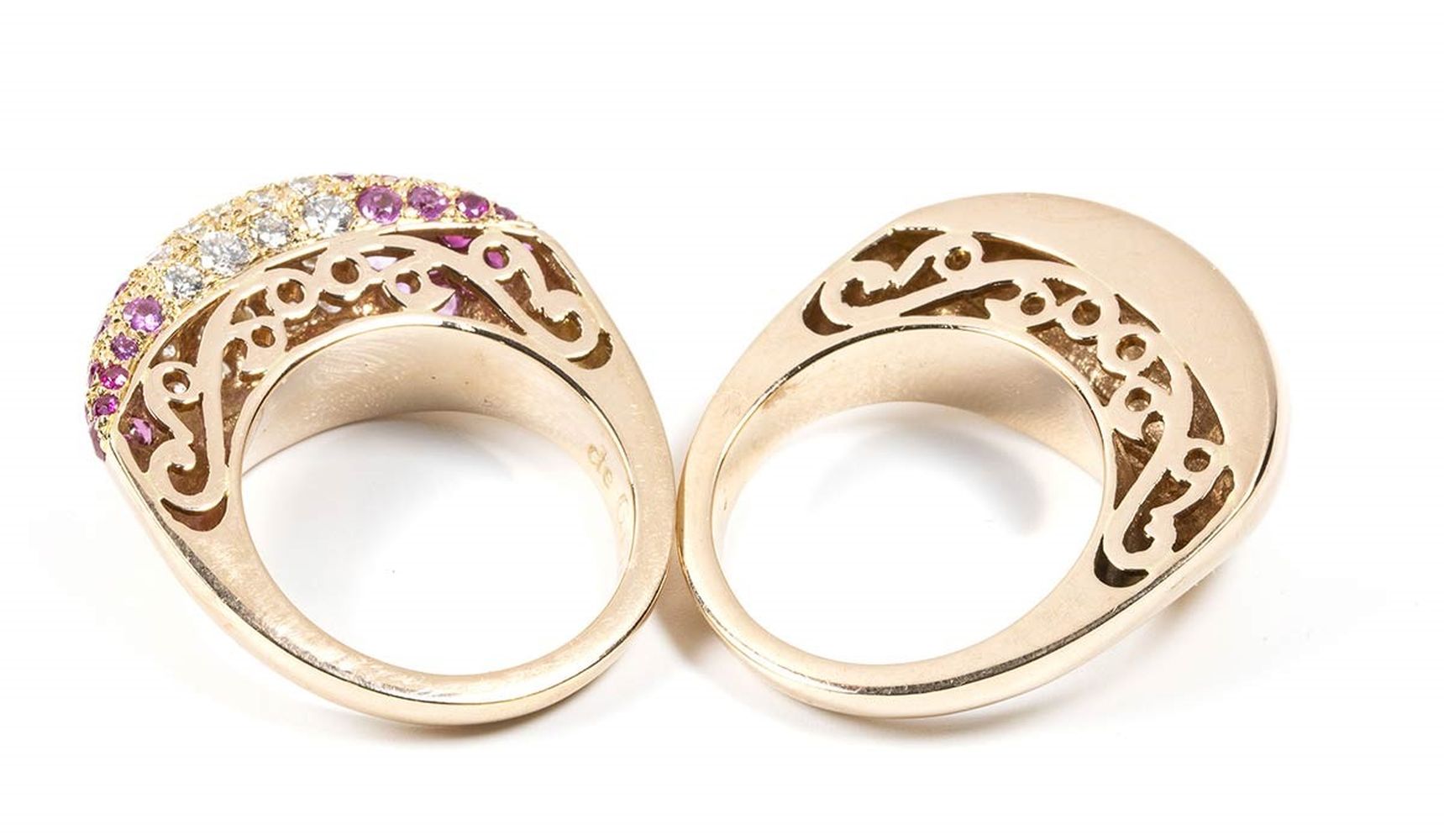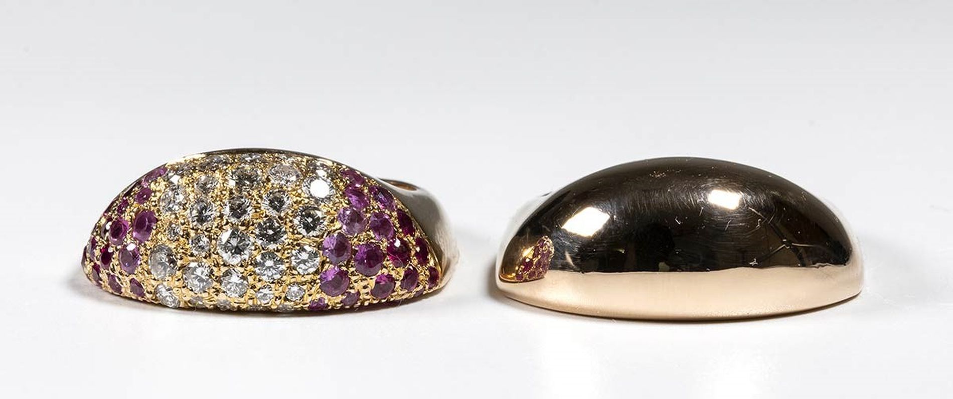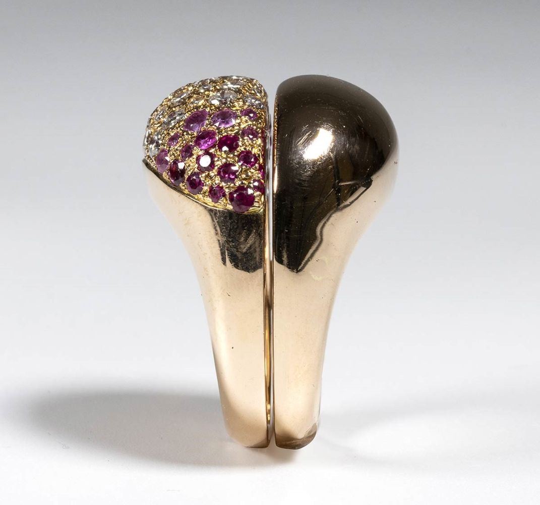 Lot 73 | Doppio anello "bacio" in oro diamanti e rubini