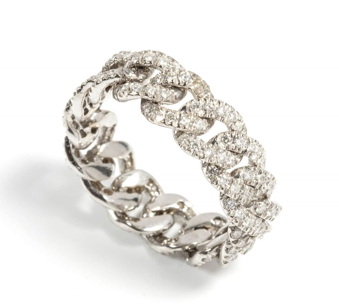 Anello in oro a maglia grumetta con diamanti