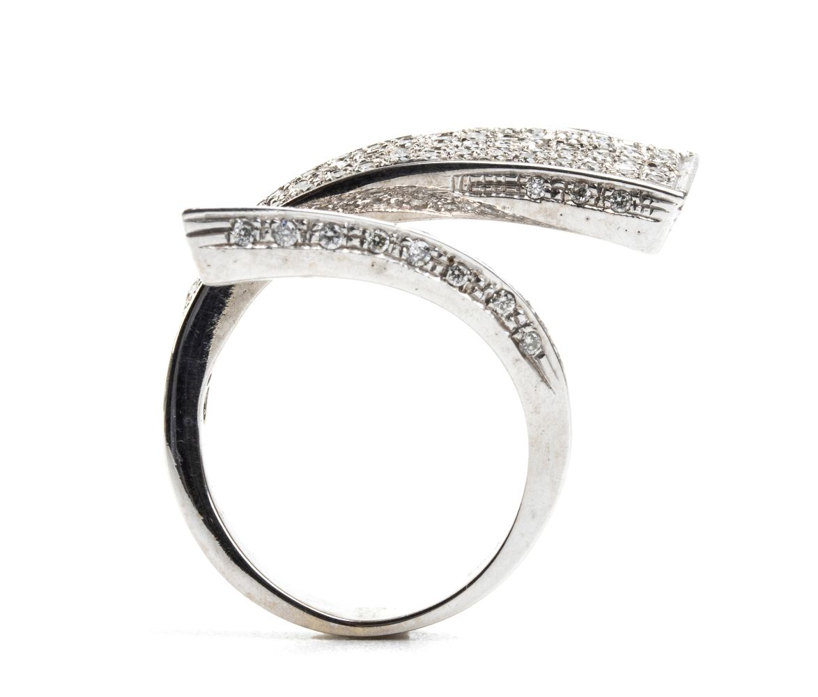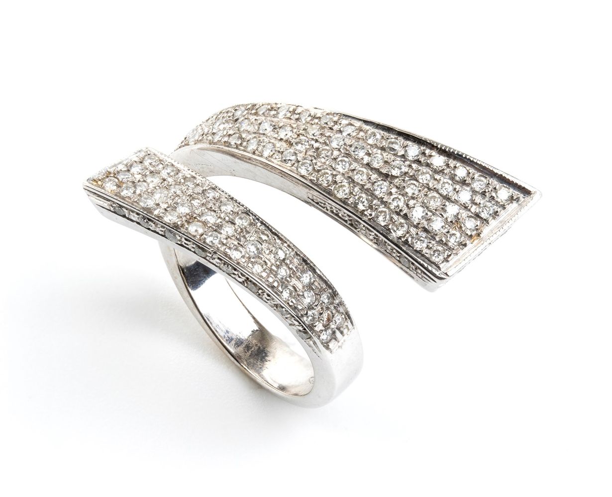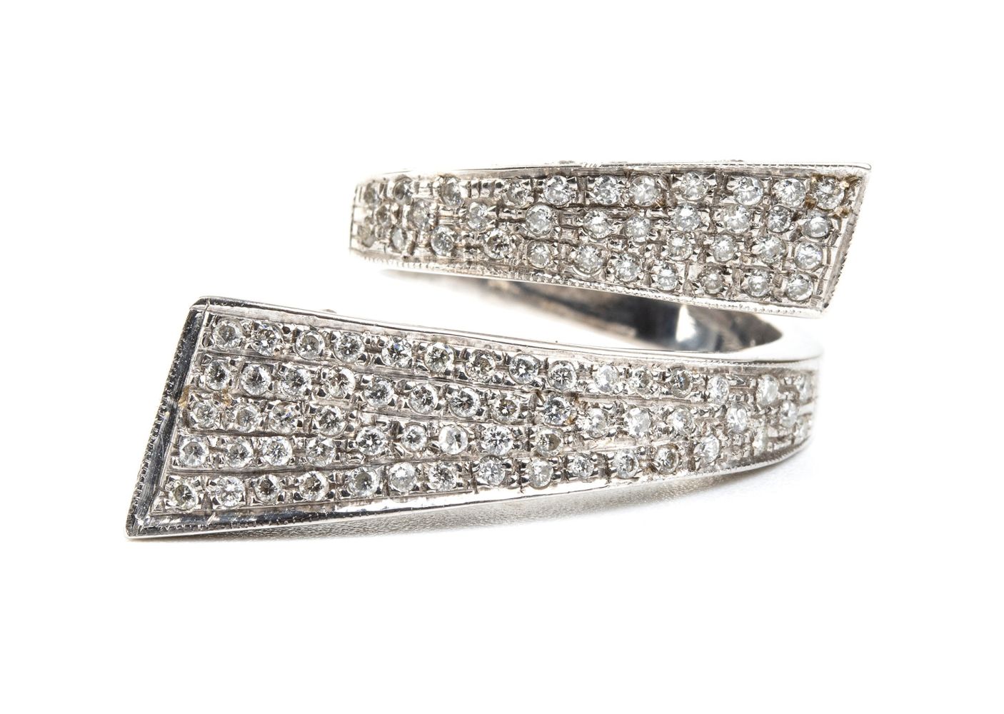 oro bianco 18k. Incastonato con pavé di diamanti taglio brillante 0,80 ct circa, G-H, VS-SI. Punzonato "750".