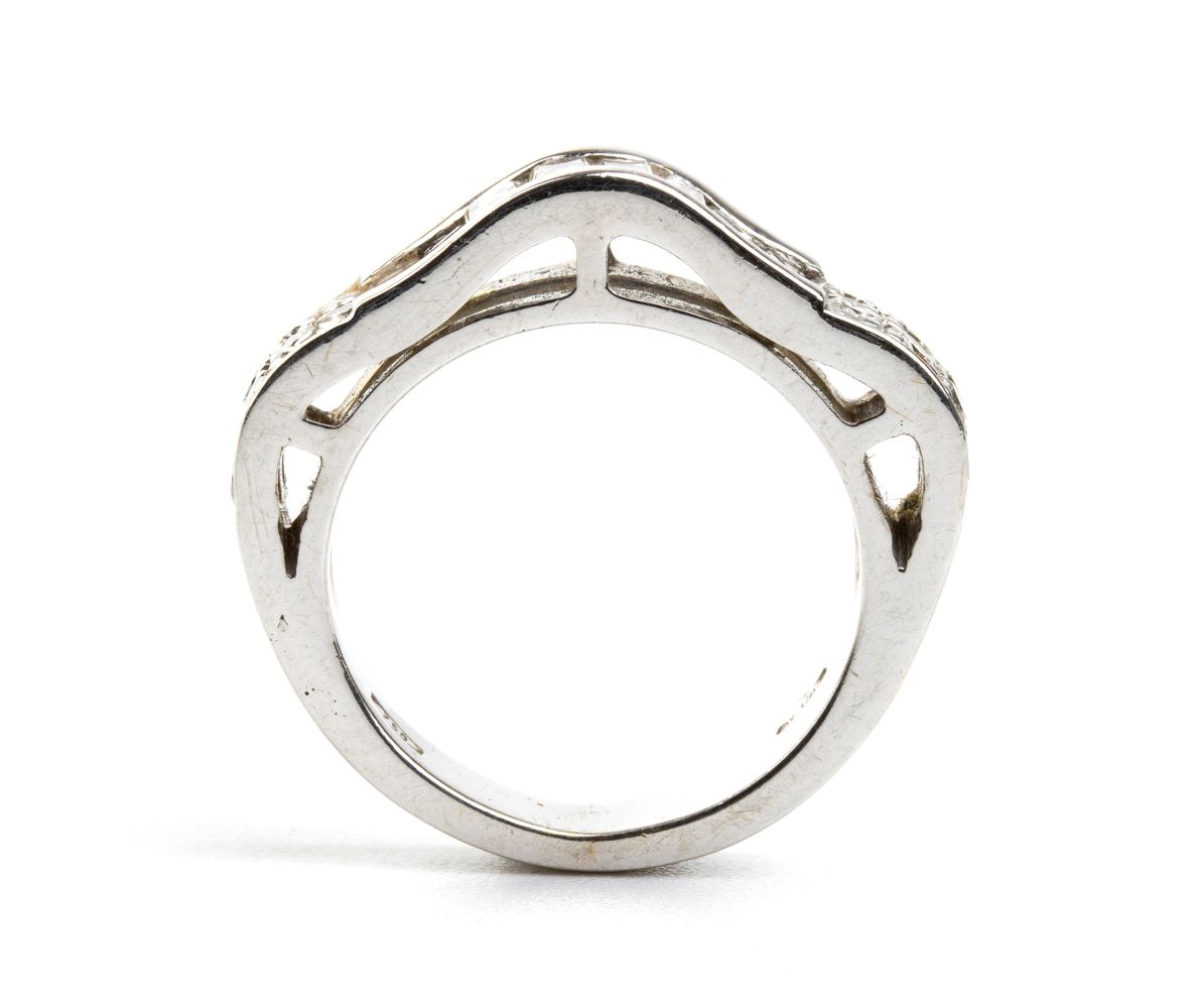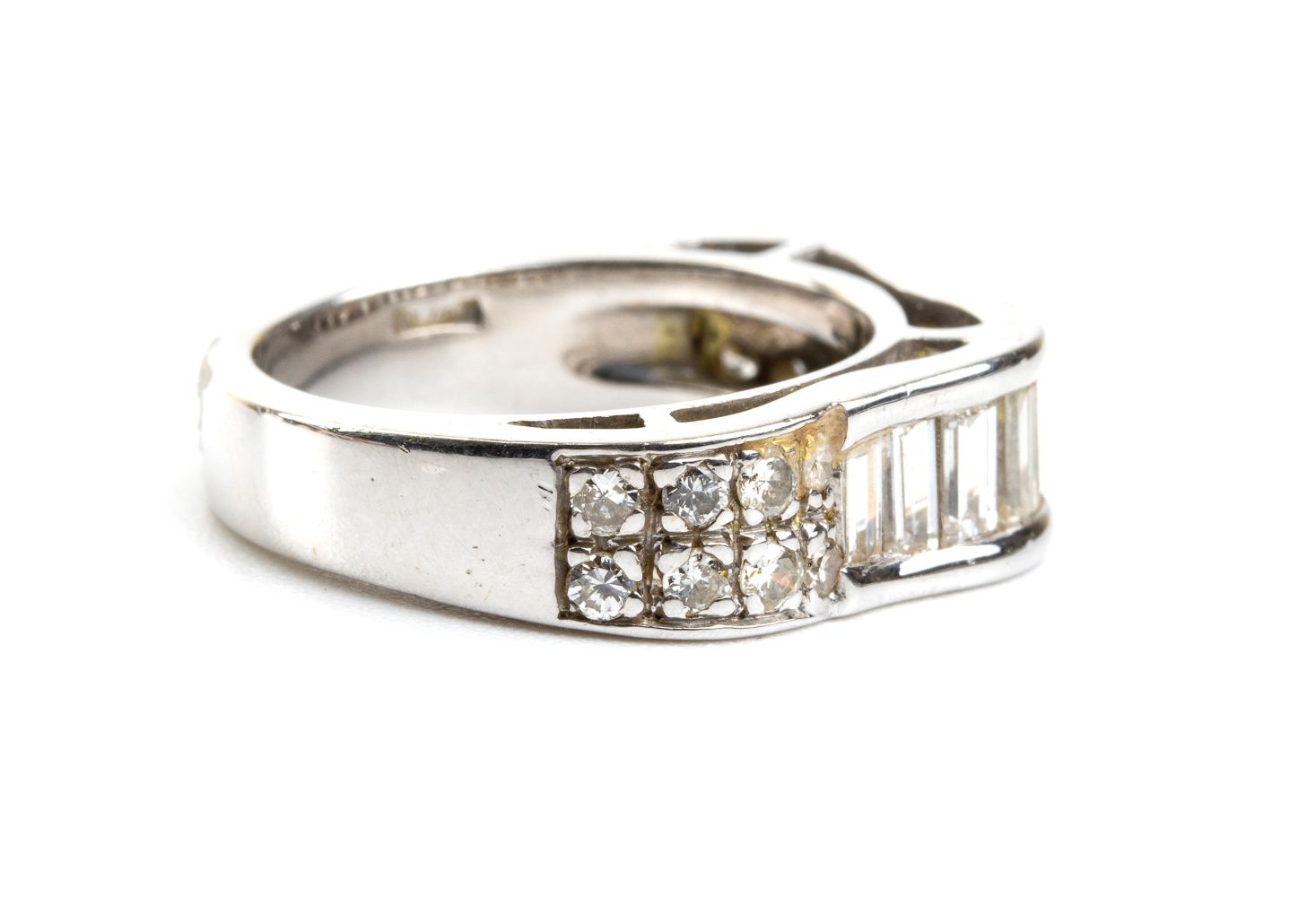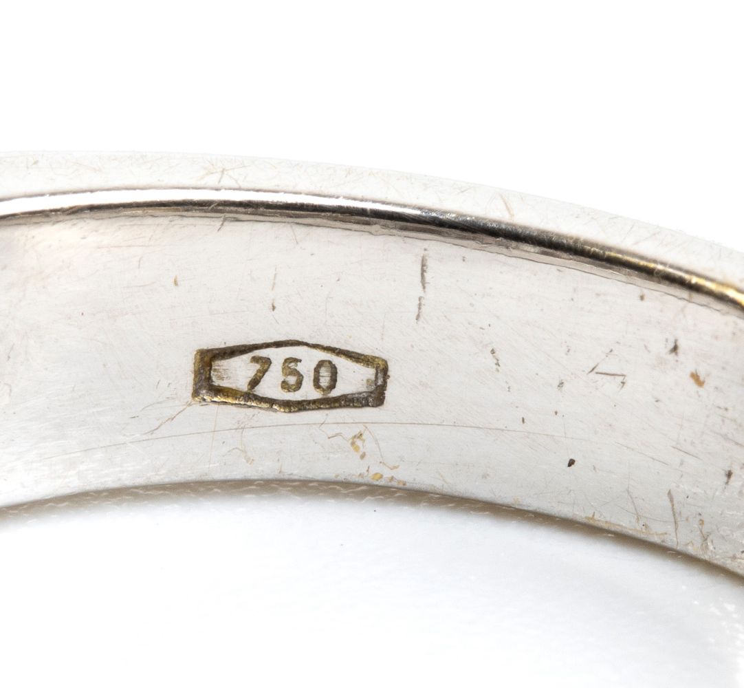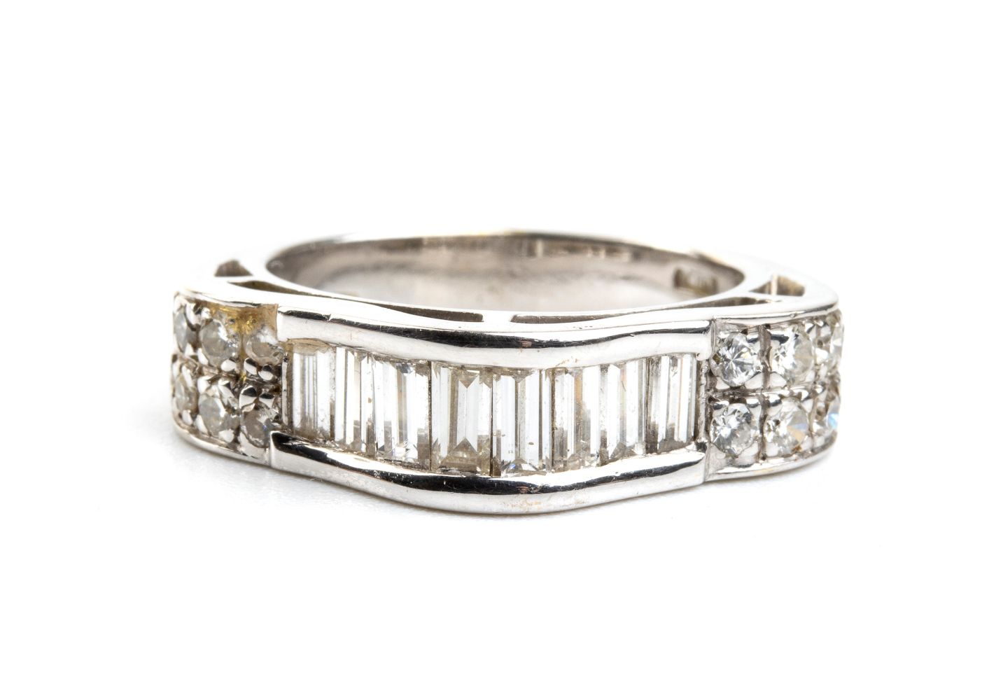 oro bianco 18k, incastonato con linea di diamanti baguette affiancati da pave di brillanti. N. 08 diamanti di forma rettangolare taglio a gradini + n. 18 diamanti di forma rotonda taglio brillante 1.50 ct totali, F-G, IF-VVS. Punzonato "750 - 1974 AL".