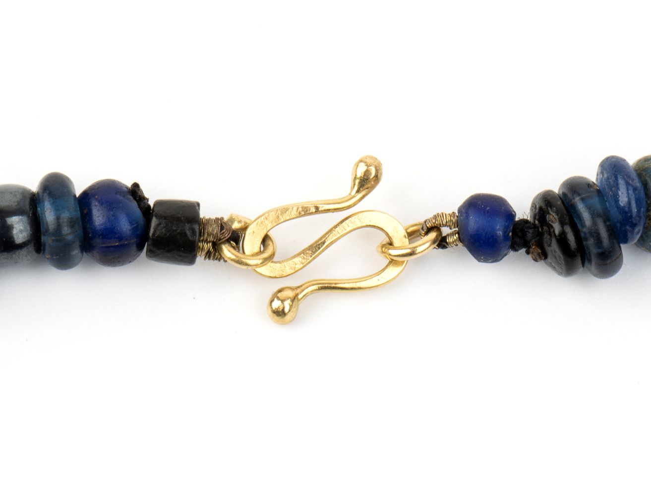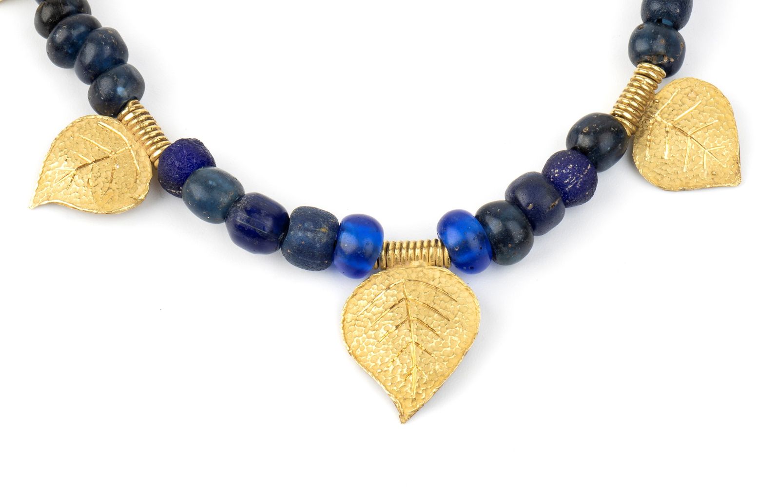ad un filo di rondelle di pasta vitrea interrotte da elementi a foglia in oro giallo.