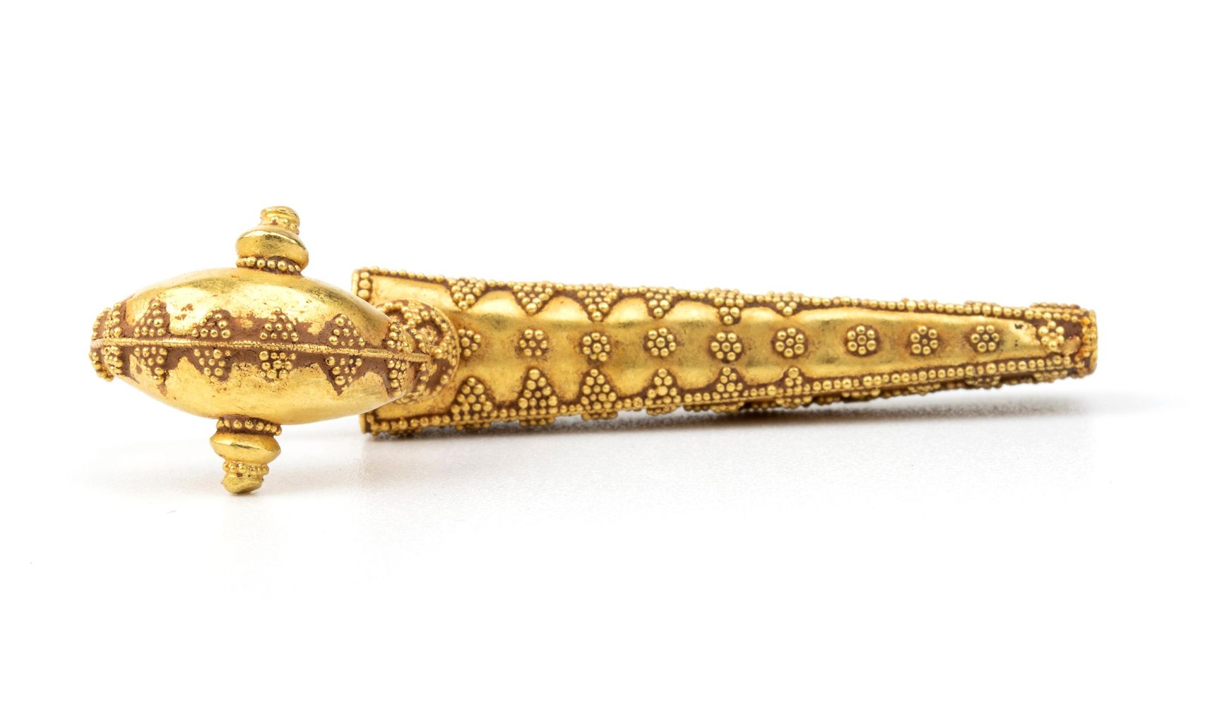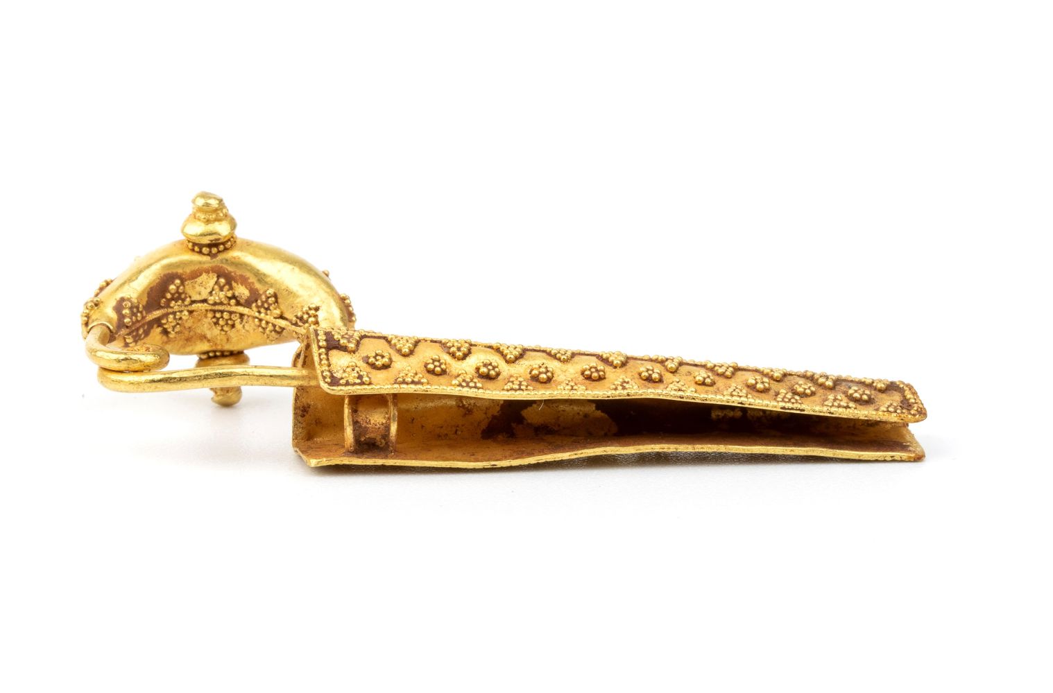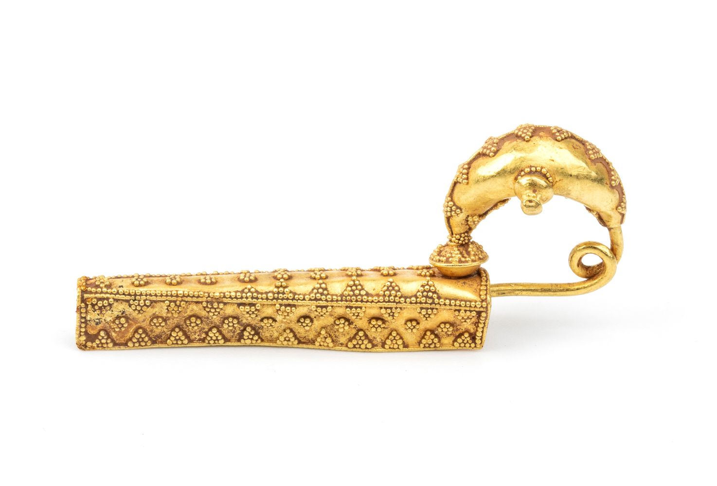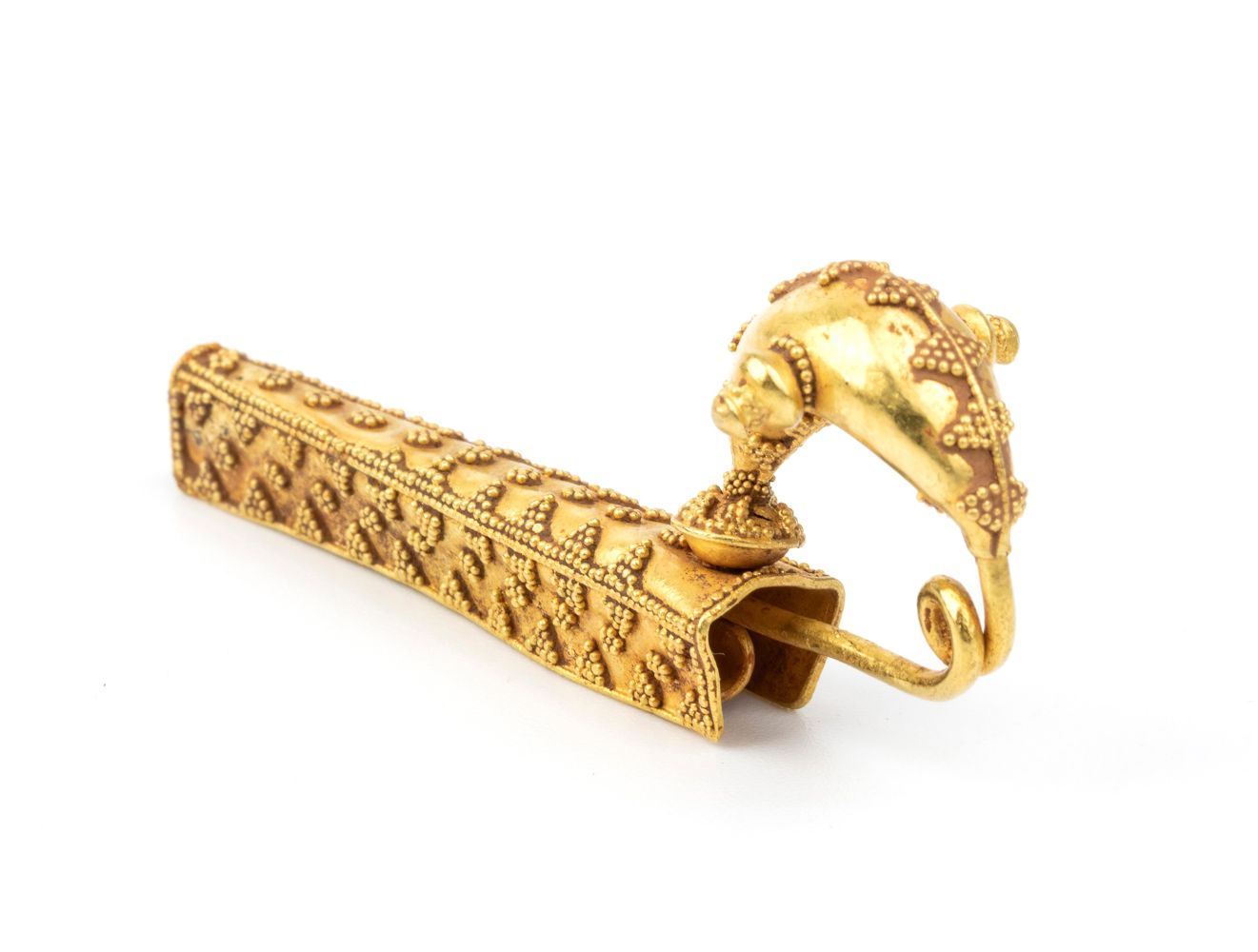 Fibula a sanguisuga in oro in stile archeologico Etrusco