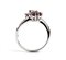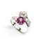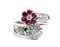 oro bianco 18k, motivo contrarie' con motivi a fiore in rubini e diamanti. N. 26 diamanti di forma rotonda taglio brillante 0.58 ct circa, F-G, VVS-VS. N. 06 rubini di forma rotonda taglio composito 0.60 ct circa. Punzonato "750 - 679 AL".