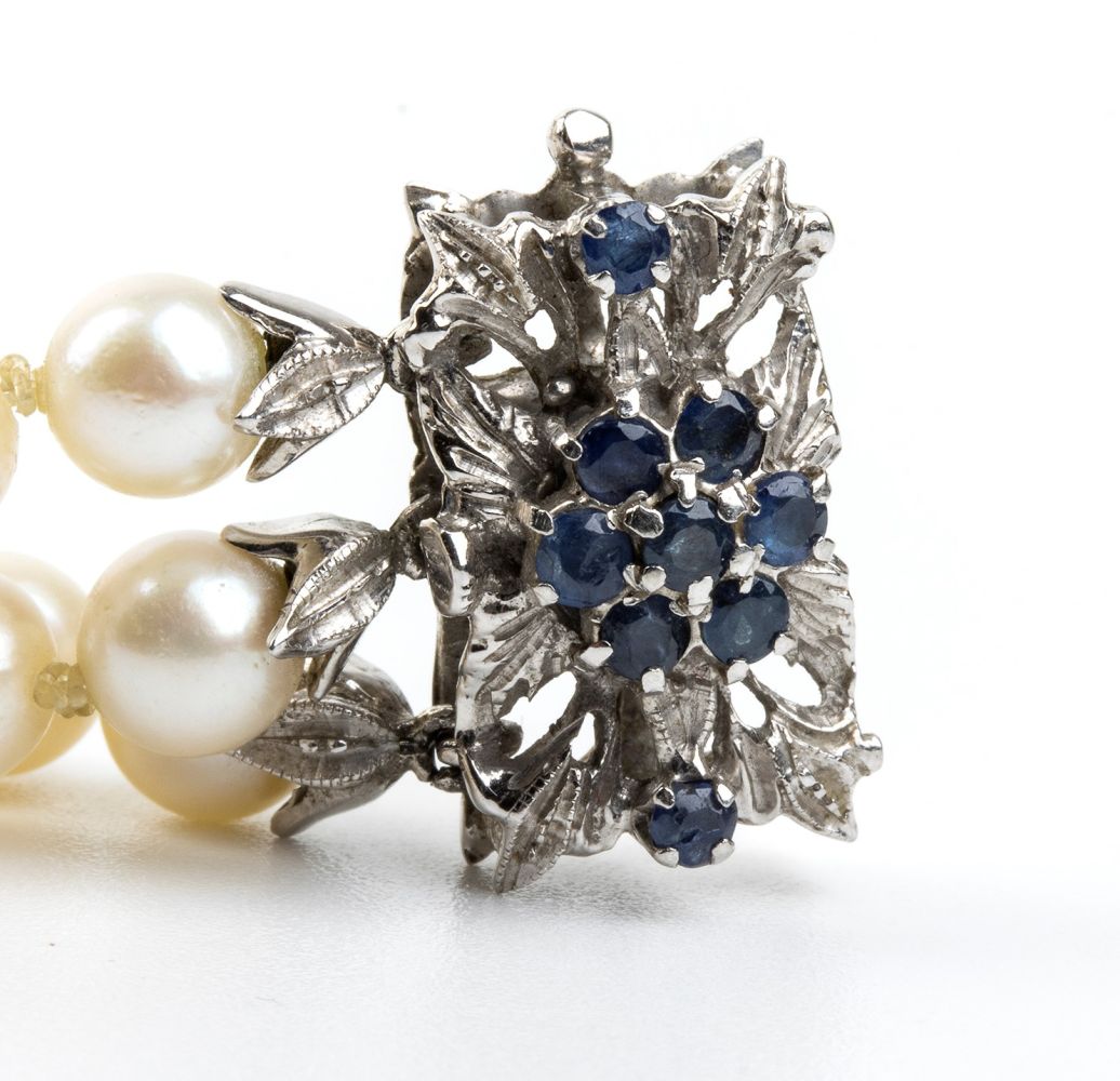 Bracciale con perle, fermezza in oro bianco e zaffiri