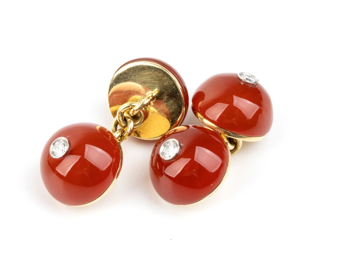 Coppia di gemelli in oro con corniola e diamanti