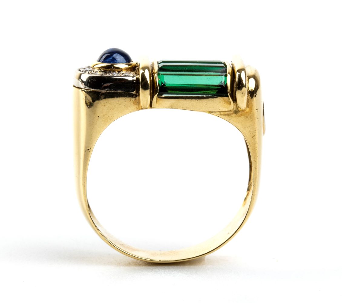 Anello in oro con tormaline, diamanti e zaffiro