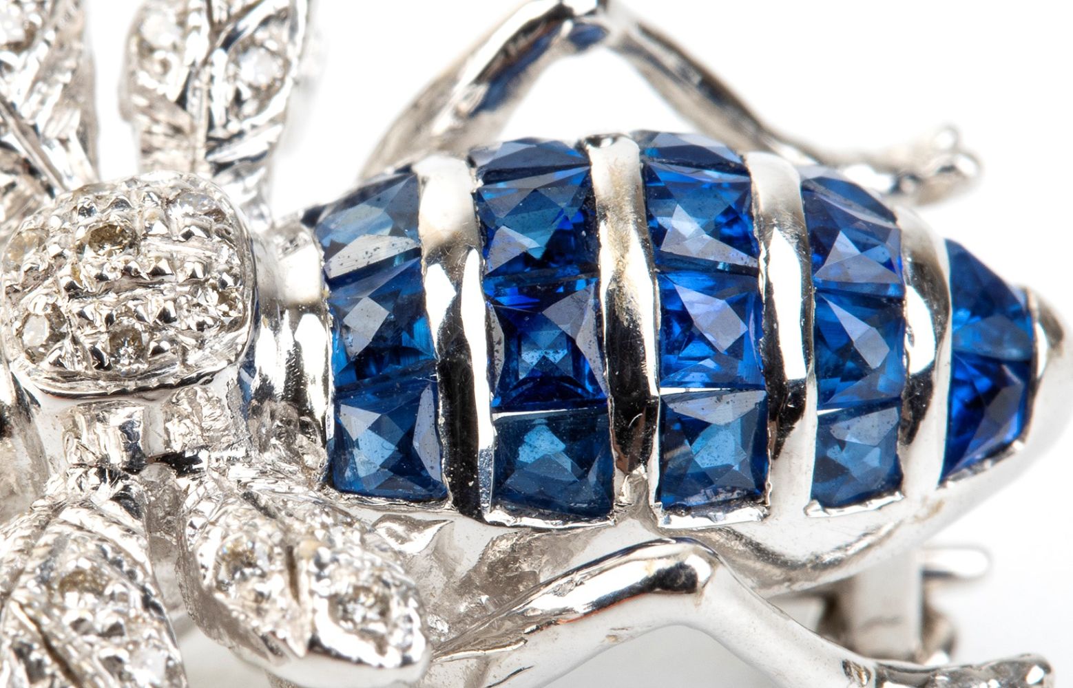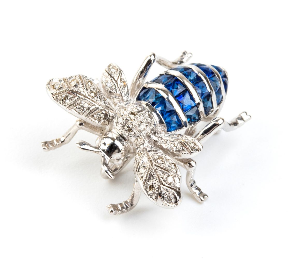 Spilla insetto in oro diamanti e zaffiri