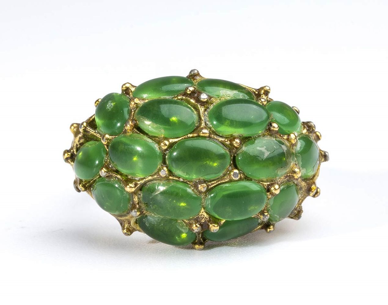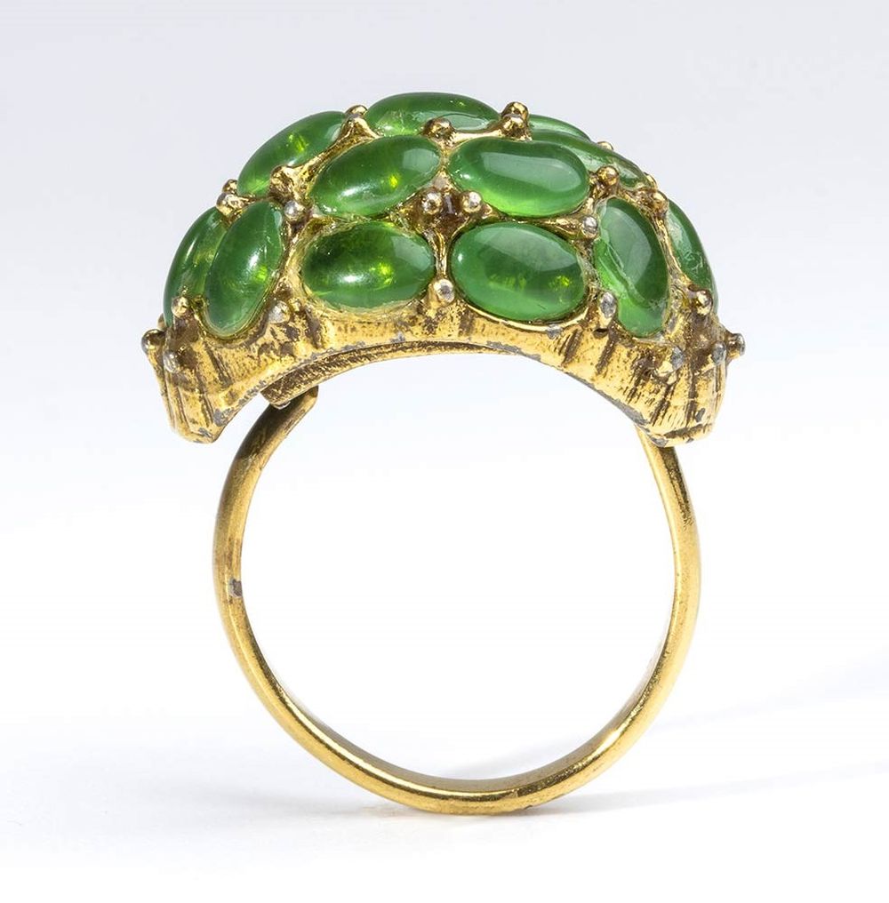 oro giallo 18k, incastonato con cabochon di crisoprasi.