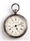 quadrante in smalto bianco con numeri romani, cursore laterale per attivare e fermare il movimento. Rimessa dell’ora e carica a chiave. Movimento e cassa nr. 27204. Argento 925/1000, serie completa di marchi Chester 1882-1883, cassaio Joseph Sewill.
