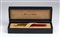 fusto in lacca rossa e cappuccio in metallo dorato.