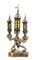 poggiante su tre piedi ritorti a volute vegetali, da cui si dipartono il candeliere centrale e i due bracci laterali decorati con tralci e foglie di vite; i tre candelieri, riccamente decorati alla base con nodi di frutta, sono sormontati da eleganti lanterne con vetro giallo su cui si innestano i coperchi a cuspide, quello centrale sormontato dalla bandiera mercantile traforata con il Leone di San Marco. Il fronte presenta un cartiglio sormontato dal corno ducale, decorato ai lati da due putti affrontati e centrato dal Leone di San Marco o Leone Marciano, simbolo secolare della città di Venezia e della sua antica Repubblica. Il leone, rappresentazione simbolica dell'Evangelista Marco, è raffigurato sotto forma di leone alato con un libro aperto recante l'iscrizione latina "PAX TIBI MARCE EVANGELISTA MEVS". Il legame del leone di San Marco con Venezia deriva dalla tradizione secondo la quale un angelo in forma di leone alato avrebbe rivolto al santo, naufrago nelle lagune, la frase: "Pax tibi Marce, evangelista meus. Hic requiescet corpus tuum" (Pace a te, Marco, mio evangelista. Qui riposerà il tuo corpo), preannunciandogli che il suo corpo avrebbe un giorno trovato riposo e venerazione in quelle terre. Base di marmo triangolare con lati concavi.