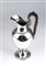 di linea neoclassica, base circolare e corpo liscio con decorazioni a palmette; manico ligno. Punzonato con i marchi in uso a Vienna all'inizio del XIX secolo per l'argento al titolo di 13 lothige /812/1000), argentiere "I.W.".
