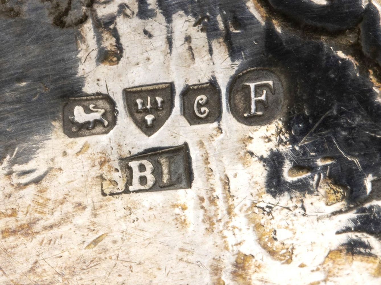 2) punzonato con la serie competa di marchi di importazione a Chester nel 1902-1903, importatore Samuel Boyce (or Boaz) Landecki, lunghezza 14 cm, peso 29 gr;