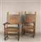Coppia di seggioloni da parata in noce, schienali e sedute rivestite in cuoio...