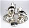 Dimensioni e pesi: vassoio, 39 x 30 cm, peso 779 gr; caffettiera, altezza 21 cm, larghezza con manico 24,5 cm, peso 701 gr; teiera, altezza 214 cm, larghezza con manico 24 cm, peso 533 gr; zuccheriera, altezza 9 cm, larghezza con manici 16 cm, peso 308 gr; bricco da latte, altezza 7 cm larghezza con manico 11,5 cm, peso 125 gr.